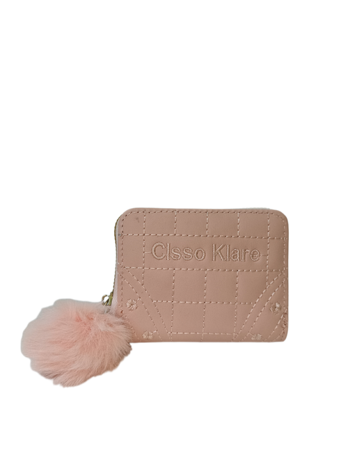Cisso Klare Quilted Zip Wallet with Fur Pom-Pom – Blush Pink